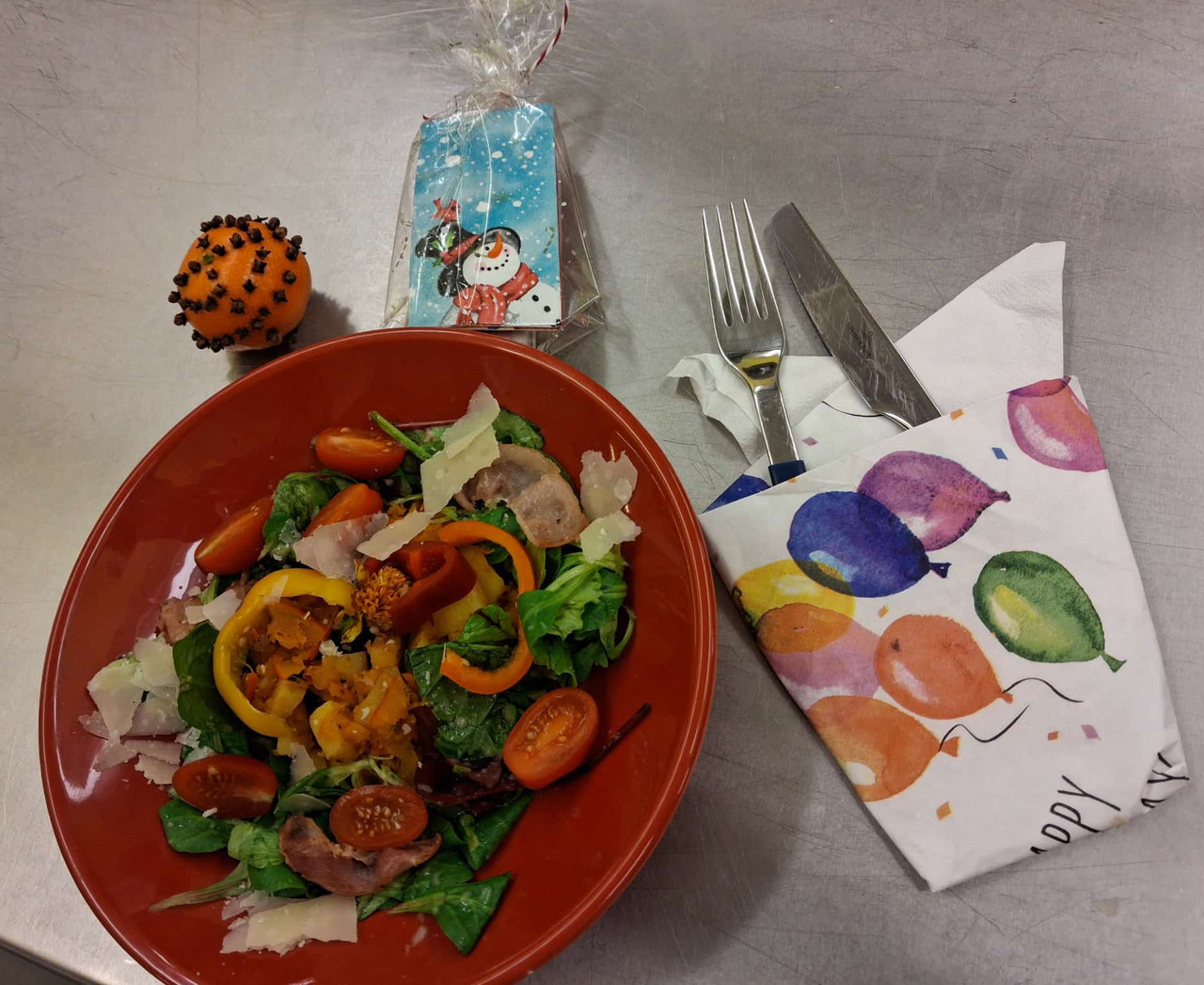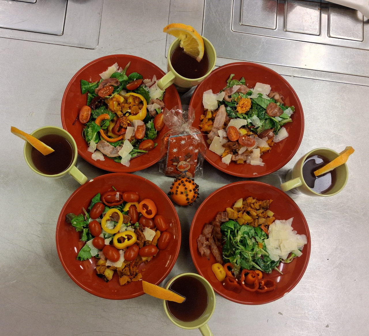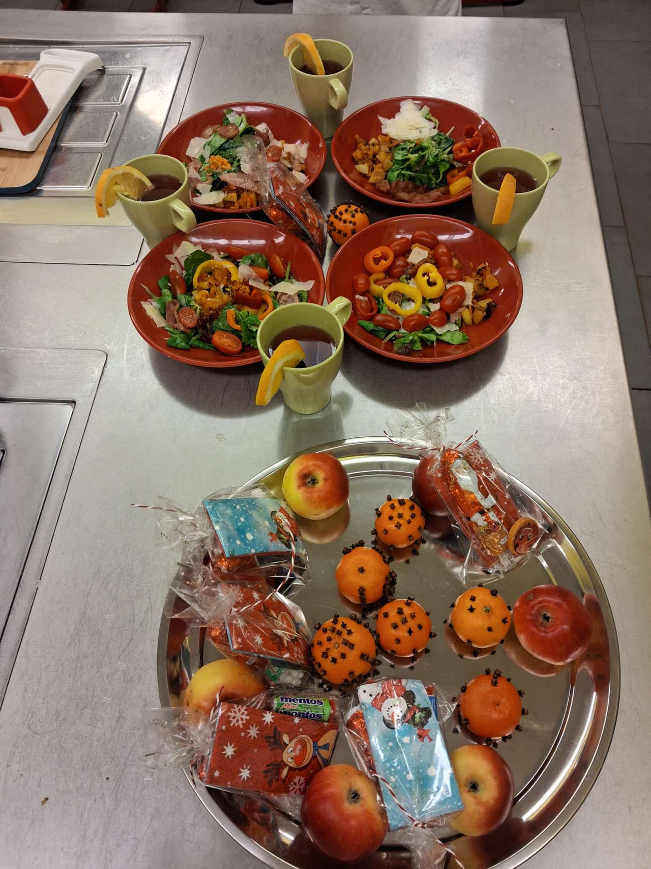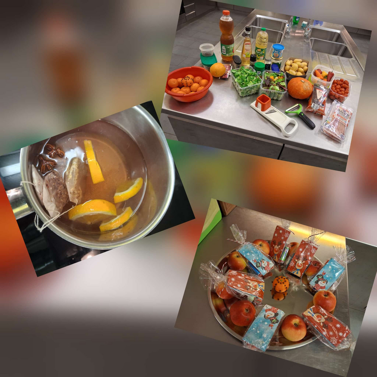 Theorie: Mehl/ Herzhafte Pfannkuchen mit Spinat/ Kinderpunsch/Erinnerung leere Gläser für nächstes Treffen